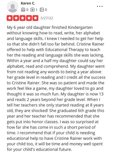 Lead Teacher and Director, Cristine Rainer, is trained in multiple therapeutic fields and has been homeschooling for over 9 years. Check out some of the homeschooling advice she offers for free on her YouTube Channel Momming at Midnight!
